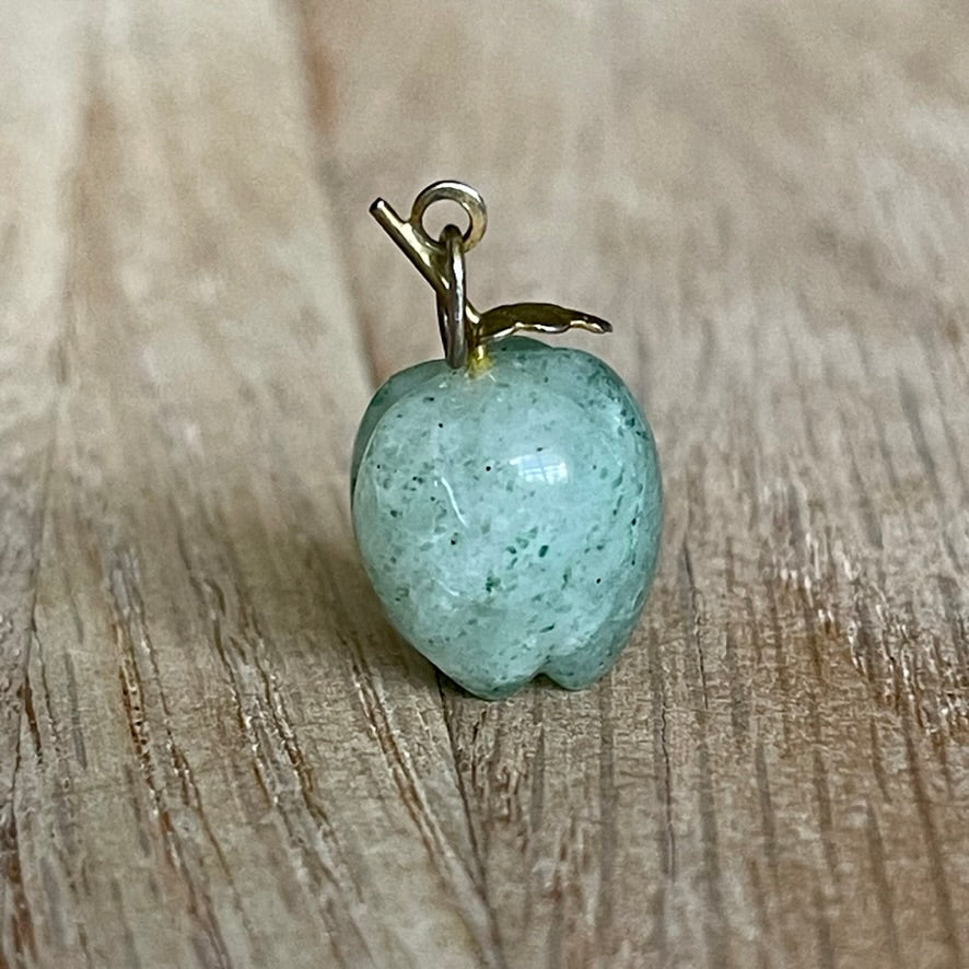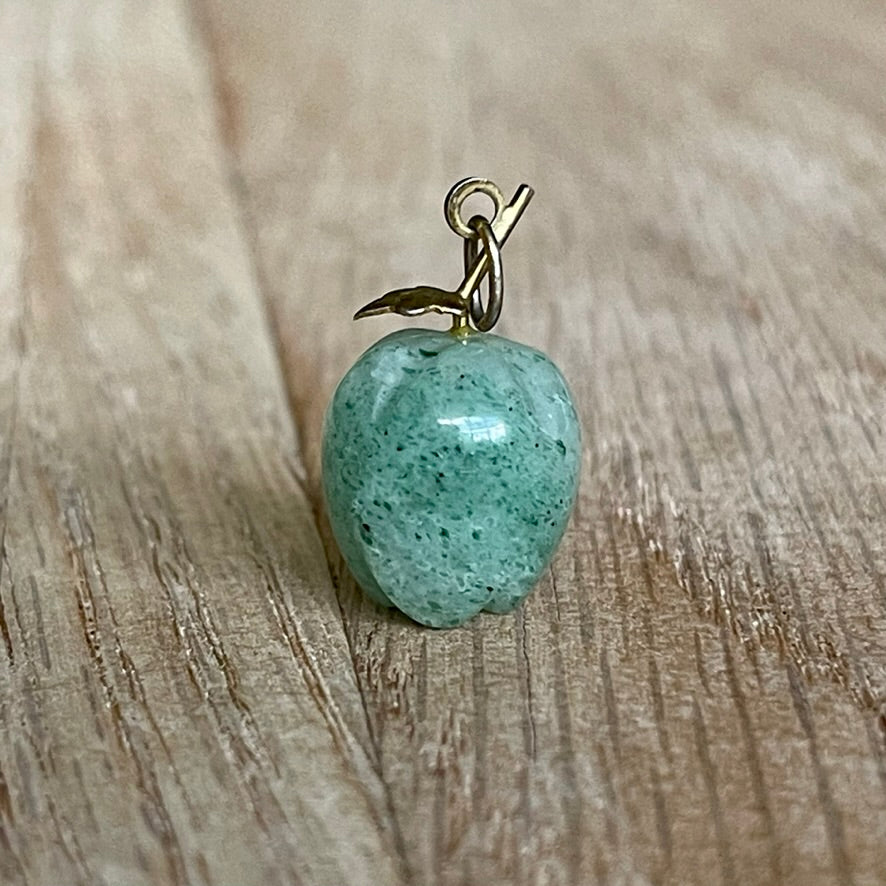 I love this 14k Yellow gold jadeite apple charm. The apple is wonderfully carve on the bottom for a realistic look and the little leaf has lovely details engraved in it as well. A must have for your charm collection.