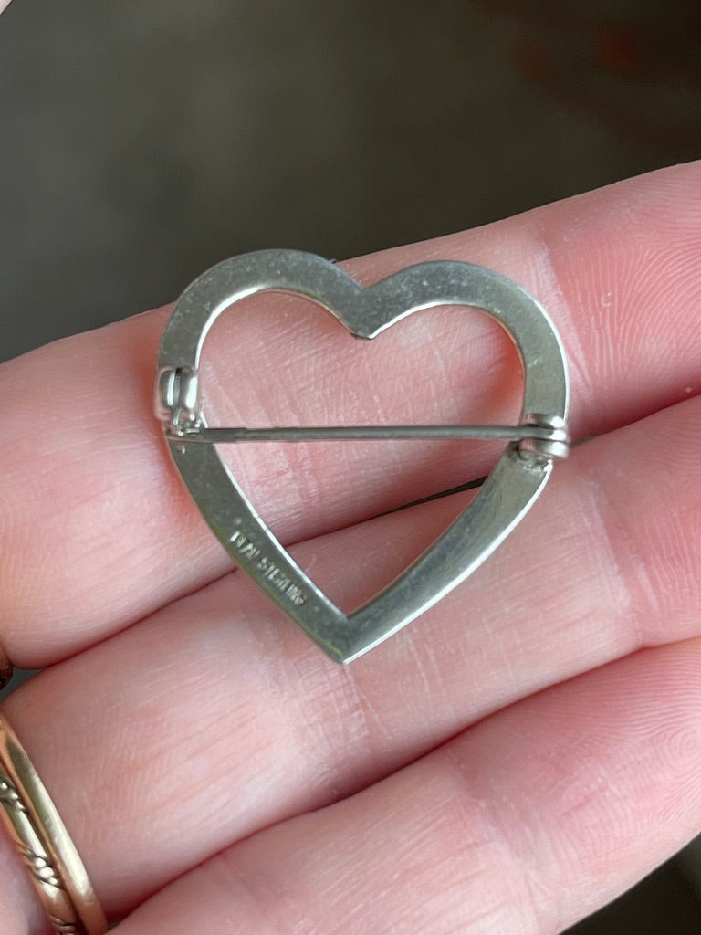 Vintage Sterling Silver Heart Brooch